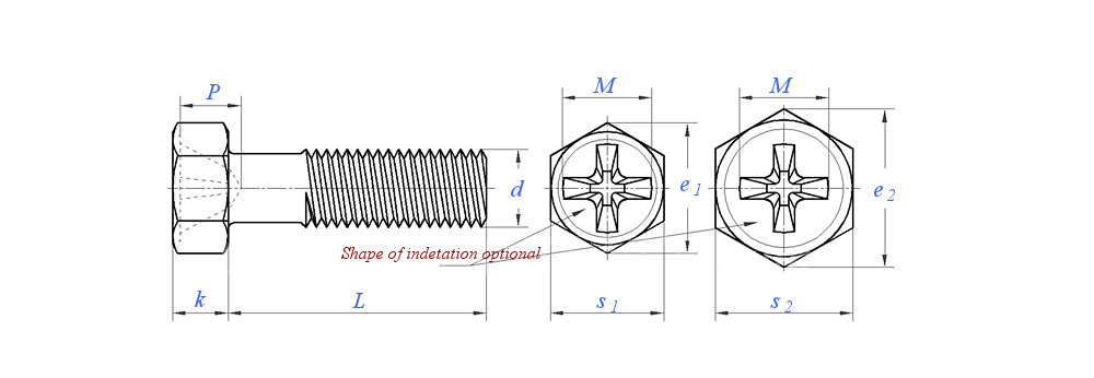 Cross Recess Indented Regular and Large Hex Head Screws