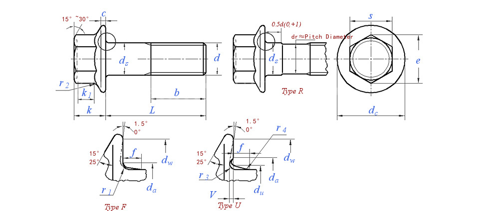 Hexagon Bolts with Flange - Small Series - Product Grade A with Driving Feature of Product Grade B