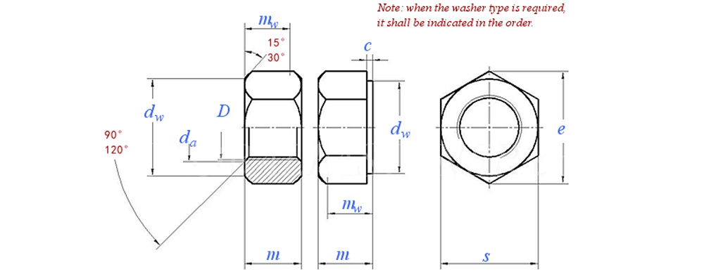 The most common type of nut, hex nuts have six sides and are typically used with hex bolts. They offer good wrench grip and torque application...