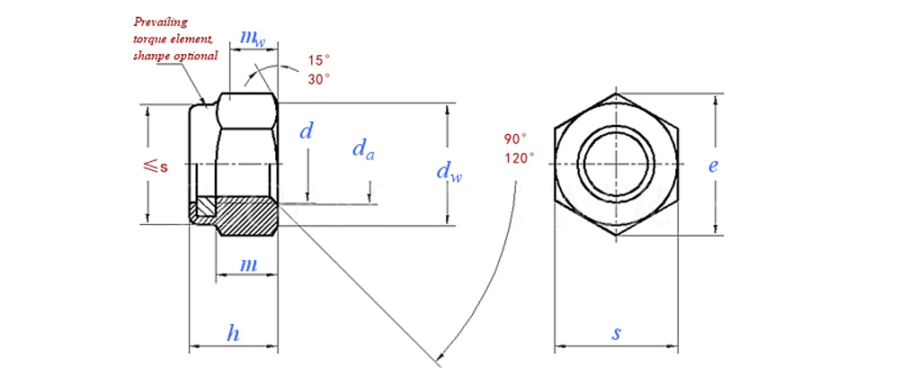 Prevailing Torque Type Hexagon Nuts (with Non-Metallic Insert), Style 2 - Property Classes 9 and 13