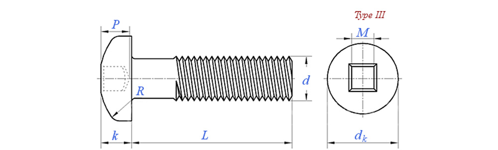 Square Recessed Pan Head Screws, Type III (ASTM F837, F468) [TABLE 2.2.5-3 III]