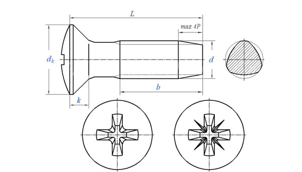 Cross Recessed Raised Countersunk Head Thread Rolling Screws - Form NE